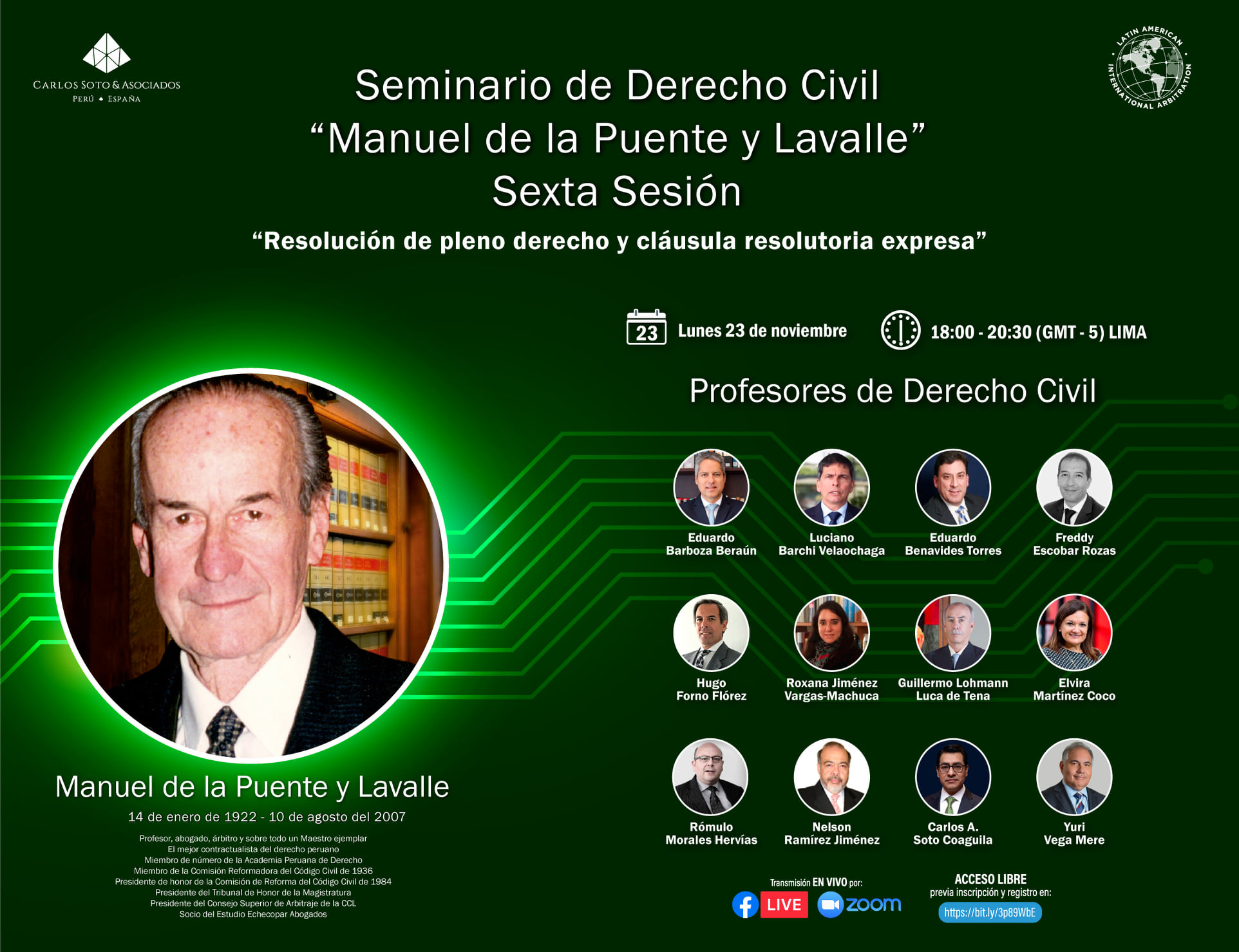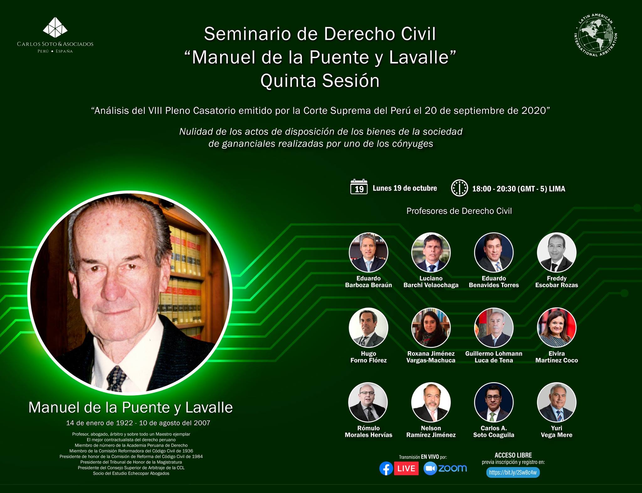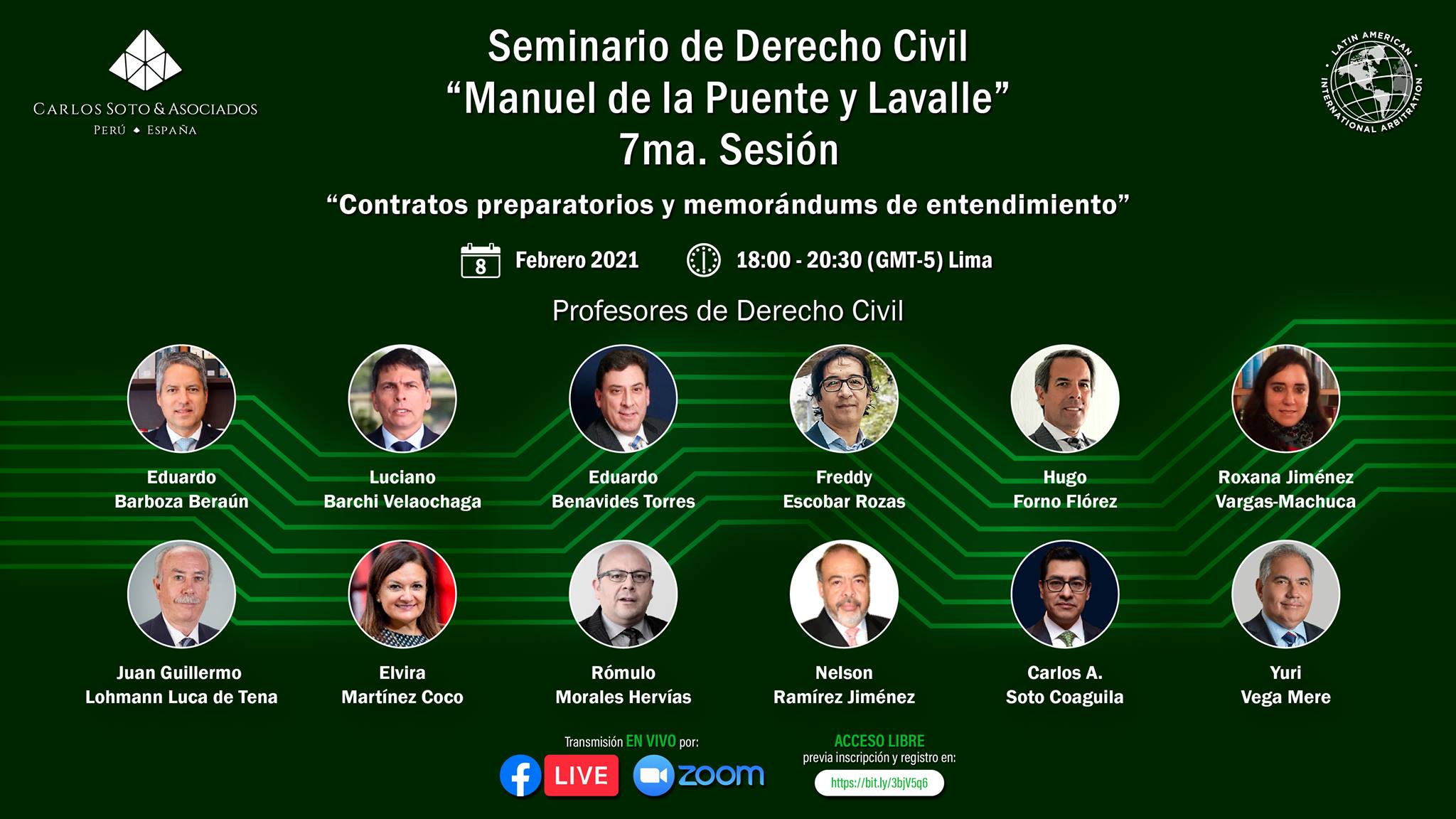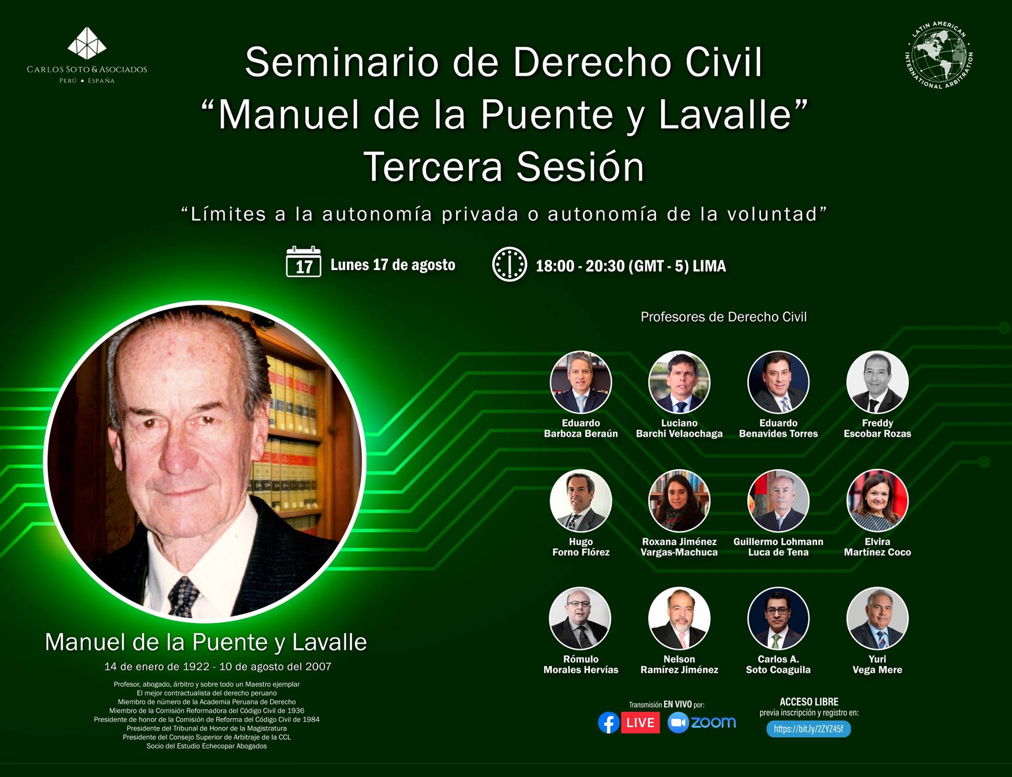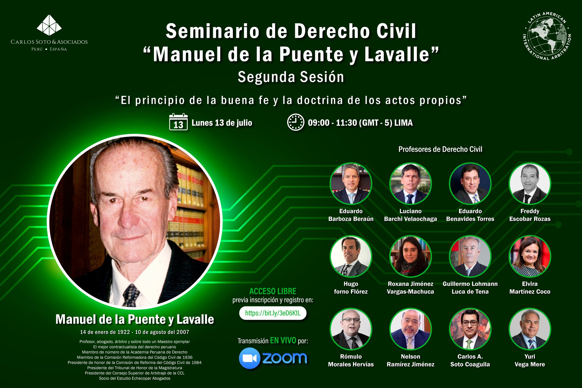 Seminario de Derecho Civil nombrado en honor al maestro peruano Manuel de la Puente y Lavalle. El Seminario reúne a los principales exponentes y profesores del derecho civil peruano para analizar académica y profesionalmente diversos temas clásicos y modernos del derecho civil patrimonial.