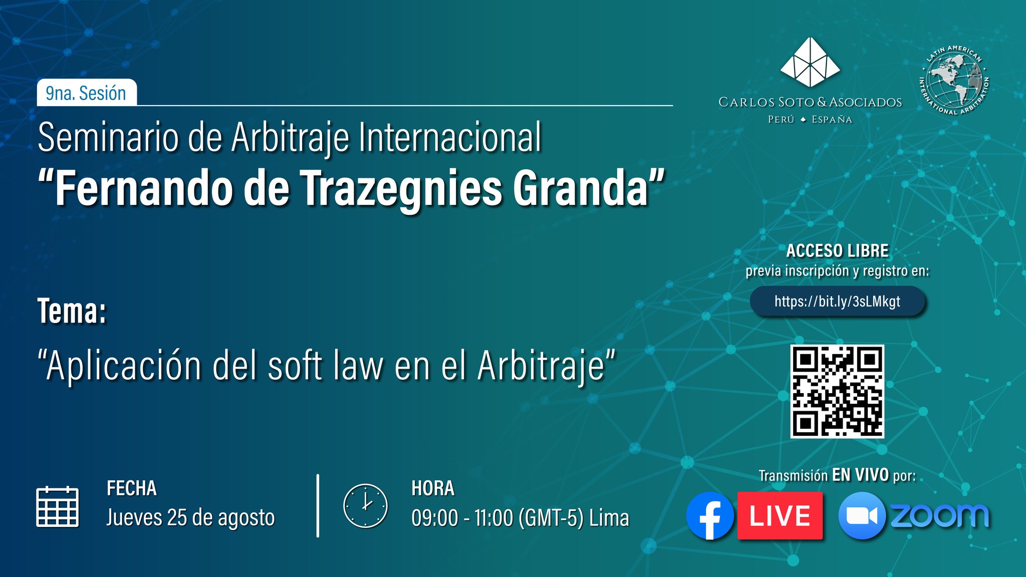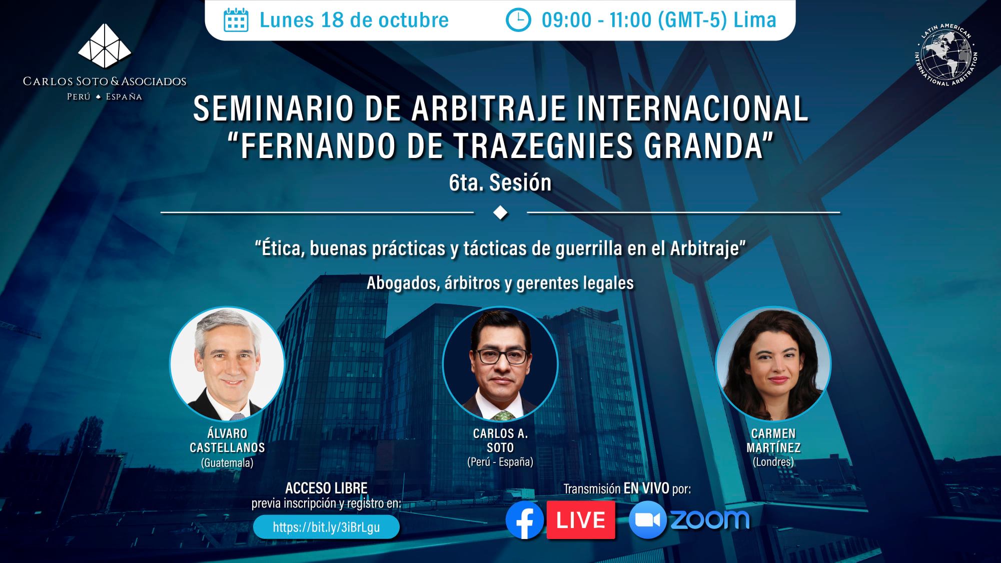 Seminario de Arbitraje Internacional nombrado en honor al maestro peruano Fernando de Trazegnies Granda. El Seminario reúne a renombrados árbitros, abogados y gerentes legales para analizar académica y profesionalmente diversos tópicos del arbitraje comercial y el arbitraje de inversiones.
